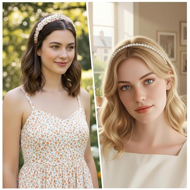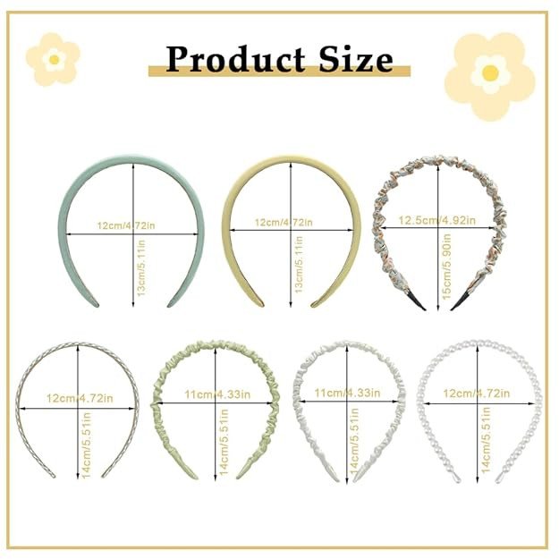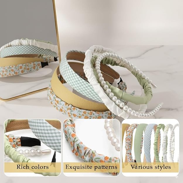 7Pcs Hair Band for Women Stylish, Floral Wide Hair Band for Girls Kids, Pearl, Plaid, Countryside Style Hair Accessories Hairbands for Kids
