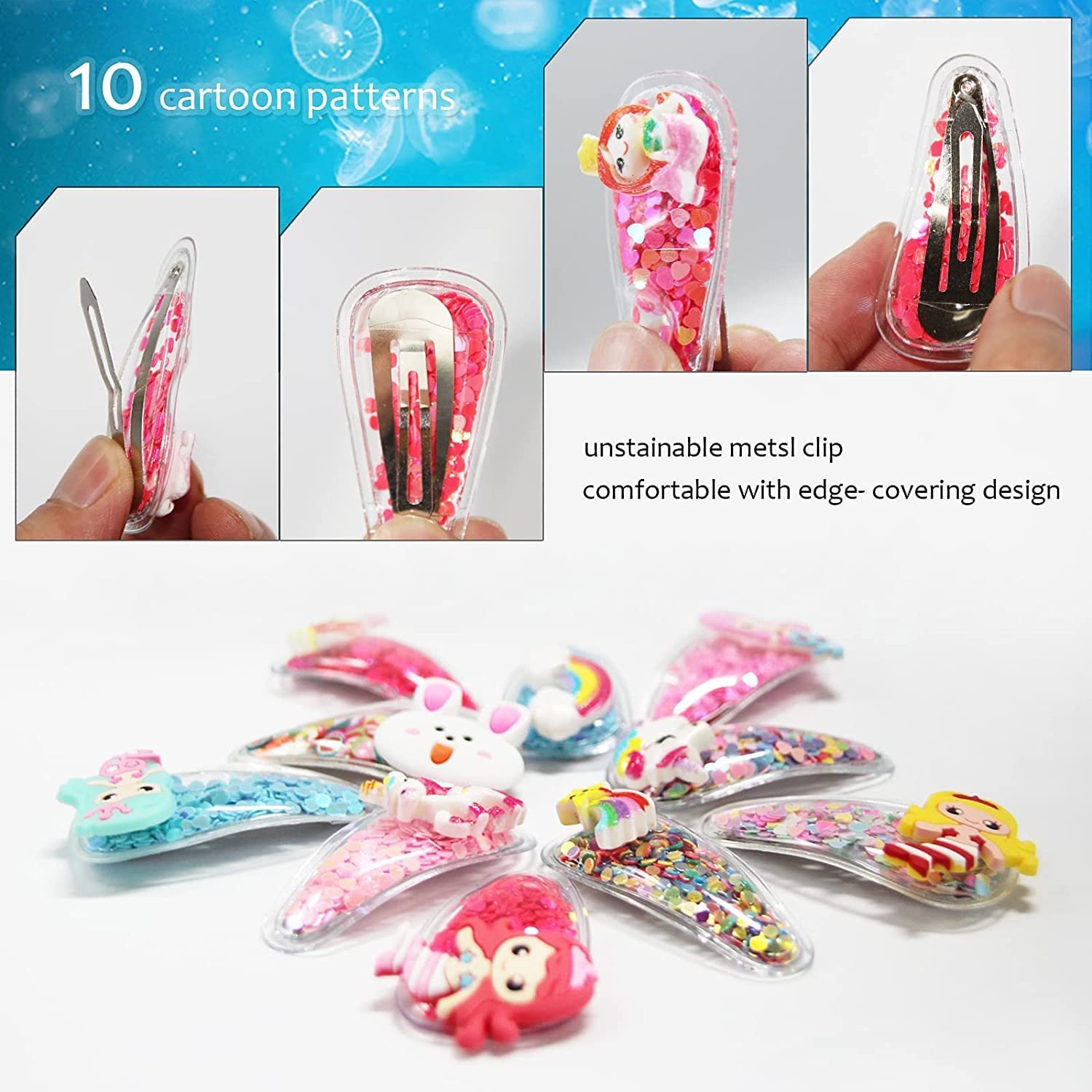 ANNACREATIONS presents a delightful assortment of Hair Clips Barrettes, designed especially for girls who love to add a dash of fun and style to their hair. This set of 10 charming hair accessories comes in a burst of vibrant multicolor options, each adorned with a playful array of sequins, transparent elements, and cute fruit and animal designs. Crafted with a combination of plastic and metal, these clips are not only fashionable but also durable. These Hair Clips Barrettes are a wonderful way to infuse joy and individuality into your hairstyle, making them perfect for girls of all ages