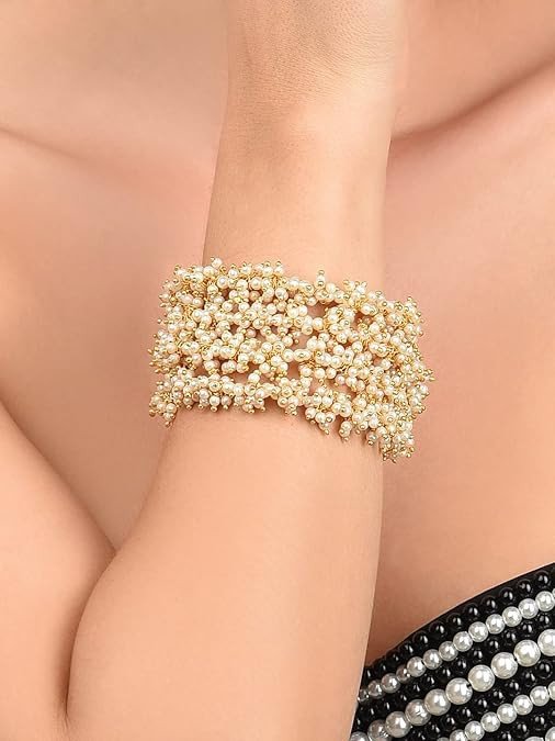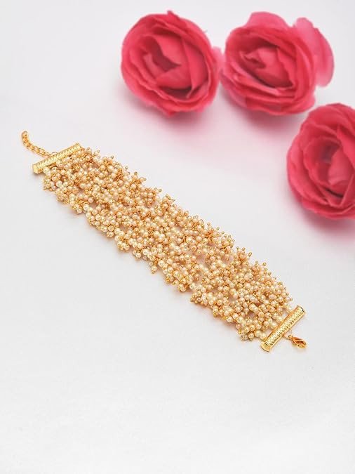 For women wearing designer bracelet is the admirable way to beautify the wrist at any event, festival, wedding or celebration which knocks at the door. This striking piece of ornament adds a unique touch of beauty, a flash of pretty colors, and attraction to any attire. Whenever you want to create the extraordinary style statement or just add the fascinating feel of fashion to everyday outfits, elegant bracelets are always the favourite piece of ornament. Zaveri Pearls Has Absolute Range Of Bracelets Such As Bangle Style Kada, Charm Bracelet, Hand Harness, Ring Bracelet, Cuff, Cubic Zirconia Diamonds, Wrap Around, Stretch Bracelets, Magnetic Bracelet Or Kada. Zaveri Pearls Brings An Exclusive Assortment Of Fashion Jewellery & Accessories Like Kundan Jewellery, Pearls Jewellery, Meenakari Or Enamel Jewellery, Temple Jewellery, Goddess Laxmi Jewellery, Lord Ganesh Jewellery, Radha Krishna Jewellery, Silver Or Oxidised Jewellery Used For Navratri, Peacock Inspired Jewellery, Floral Jewellery, Chunky Jewellery, Quirky Jewellery, Brass Jewellery, Vacation Jewellery, Casual Jewellery, Bridal Jewellery, Bridemaids Jewellery, Padmavati Inspired Jewellery, Multi-Color Jewellery, Minimal Jewellery, Traditional Or Ethnic Jewellery, Statement Jewellery, Contemporary Jewellery, Trendy, Stylish & Fancy Jewellery, Work Wear Jewellery, Western Jewellery, Animal Accents Jewellery, Combo Jewellery, Beaded Jewellery, Antique Jewellery, Rose Gold Jewellery, Gold Jewellery. This Jewellery Can Be Used For Multiple Events, Occasions & Ceremonies Like Festivals, mehandi, Haldi, Sangeet, Engagement, Wedding, Destination Wedding, Reception, Baby Shower, Party Or Fashion Shows. It Can Also Be Best Pick For Trousseau Or Gifting.