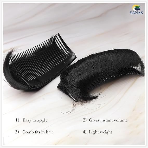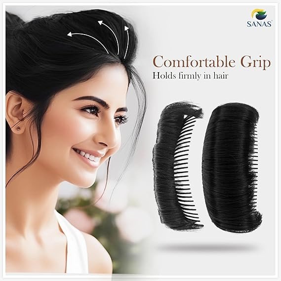 This black hair volume puff with comb is designed to give instant volume and a natural lift to the front of your hair. The rich black color blends seamlessly with dark hair, creating a fuller and polished look. It features a built-in comb that helps hold the puff securely in place, making it comfortable for long wear. Ideal for puff hairstyles, buns, and elegant everyday or party looks.