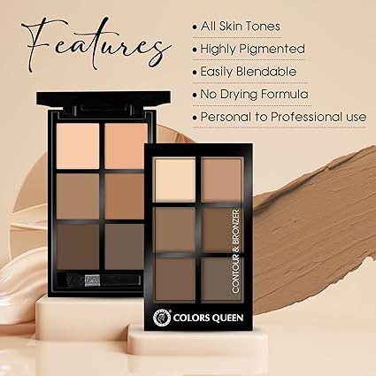 You constantly rush to find different contour and bronzers, but now we are here to take care of you and are now introducing Colors Queen Contour and Bronzer palette for your needs - the recently launched Contour & Bronzer Palette. Now offered in three adaptable versions that work with all skin tones, these bronzer palette for face makeup offer highly pigmented shades that melt into your skin for a flawless finish. These contour palettes are made with a non-drying formula that keeps your skin looking radiant and hydrated all day. These bronzer palettes are perfect for creating unique professional-level makeup looks, regardless of whether you are a makeup enthusiast or professional artist.