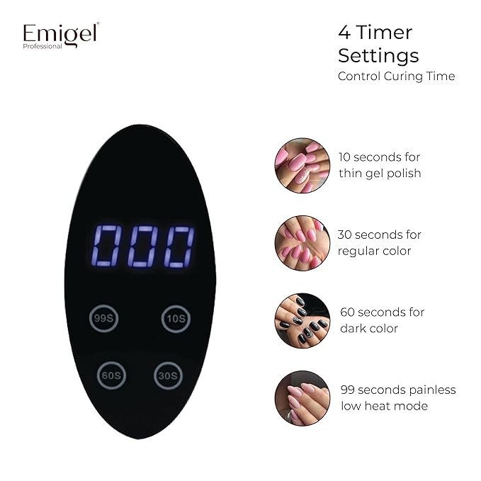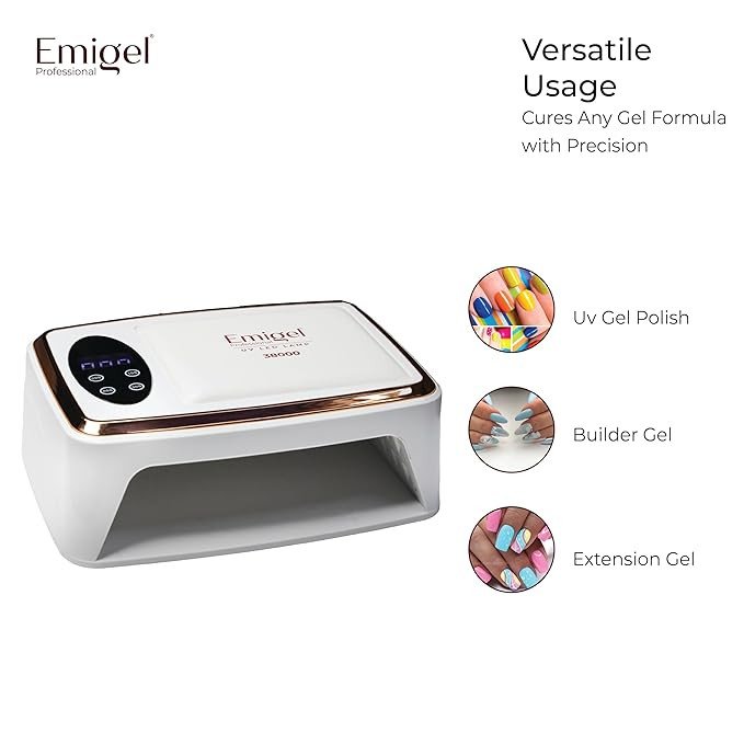 Achieve flawless gel nails in less time with the EMIGEL UV lamp’s powerful 380W curing capability.