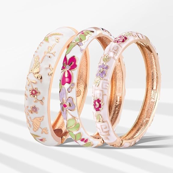 Enamel Bangle Bracelet Set of 3 in Gift Box for Wife Girlfriend