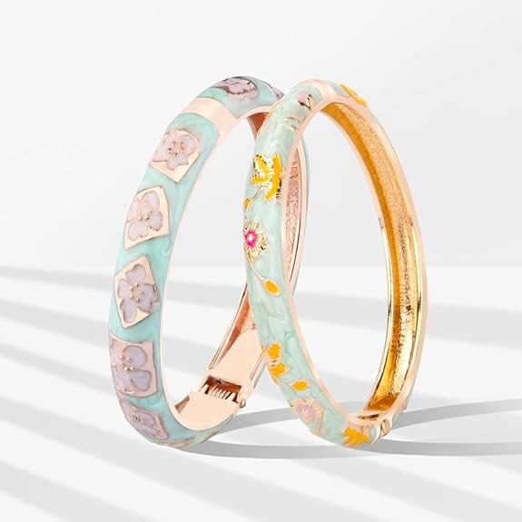 UJOY Enamel Bangle Bracelet Two Pcs Set in Gift Box for Lady Women Birthday