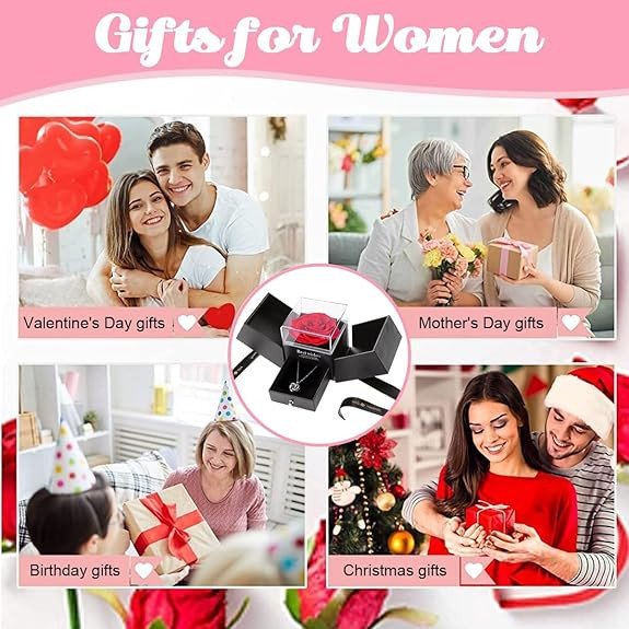 UNIQUE & BEST GIFTS FOR GIRLFRIEND, WIFE, LOVE, WOMEN - The package contains a preserved rose gift box, a necklace in 100 languages of "I love you", a heart-shaped greeting card that can be filled in by yourself, and a gift packaging bag.The preserved rose is a symbol of eternal love. Nature fresh Rose with I Love You necklace and a love note specially designed for women, girls, girl friend, special friend etc. It is a perfect useful gift for your lover, pregnant wife,30th birthday, anniversary gift for wife special, woman gifts, gift girlfriend, love gifts for wife. This is best to gift girlfriend.