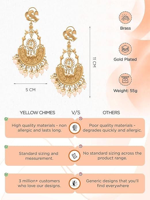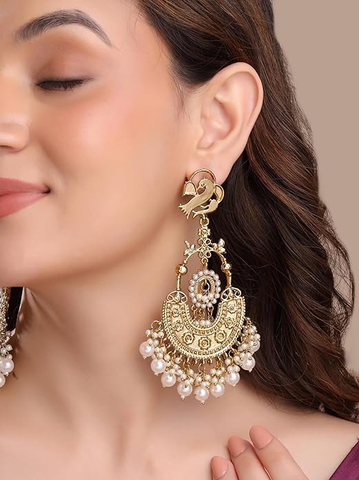 The gold-plated finish adds a luxurious shine, making them perfect for weddings, festivals, parties, and cultural celebrations. Lightweight and comfortable, these earrings are easy to wear for long hours without discomfort.