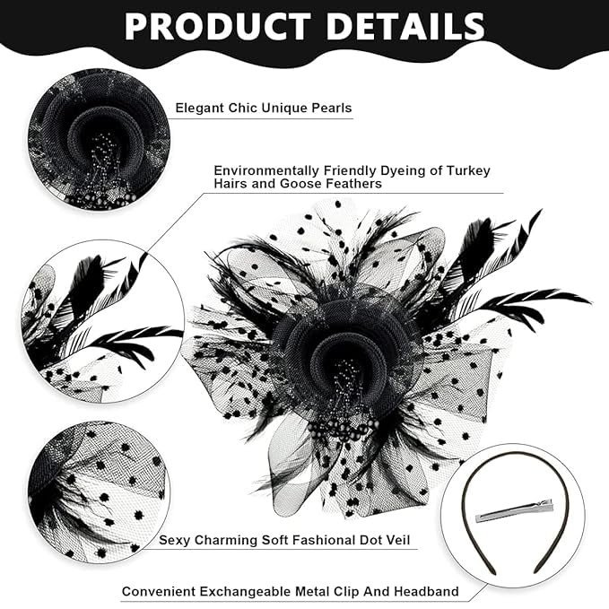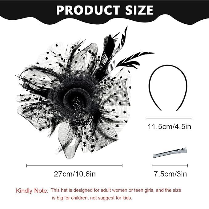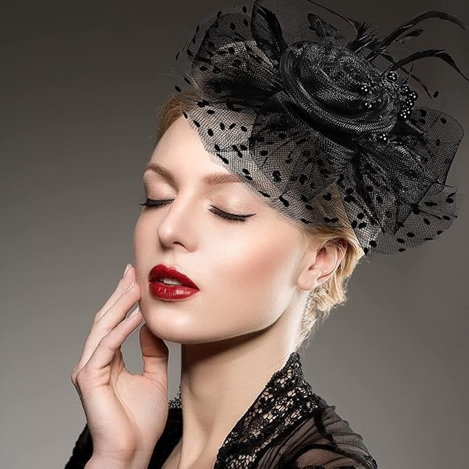 Fascinator Hats for Women Flower Mesh Feathers Headband Cocktail Tea Party Headwear Vintage Ladies Hair Clip (Black)