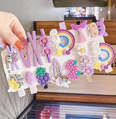 Figment Hair Clip Cute Fruit Cartoon Animal Shape Hair Pins Set for Baby Girls, Little Girl Hair Stuff Kids Accessory, Flower Candy, Fruits Rainbow, Butterflies for Hairstyles (Purple, 14 Pcs)