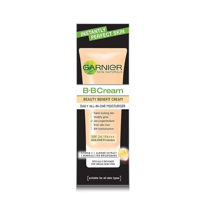Garnier BB Cream for women is an all-in-one daily moisturizer for face. It is enriched with Vitamin C, Almond Extract and Brightening minerals and helps provide the benefits of multiple skin care products in just one cream - • Brightens skin and gives it a healthy glow • Gives the skin an even tone • Smoothens and reduces imperfections • Gives long lasting (8 hour) moisturization • SPF 24 and UVA/UVB filters protect skin from harmful sun rays Switch to new generation of skin care – get instantly perfect skin in just 1 application! How to use – Spread the BB cream like your regular moisturizer. Apply with light circular strokes from the middle of your face outwards on perfectly cleansed skin. For best results, use after Garnier Light Complete Facewash