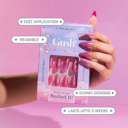 Gush Beauty Press On Nails | Reusable Extensions | Artificial Nails Set | Long Lasting Design | Glue Tabs and nail glue included | Pack of 24 Nails | For women (Ballerina Baby - Medium Square)