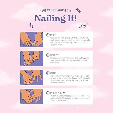 Gush Beauty Press On Nails | Reusable Extensions | Artificial Nails Set | Long Lasting Design | Glue Tabs and nail glue included | Pack of 24 Nails | For women (Siren - Super Short Square)