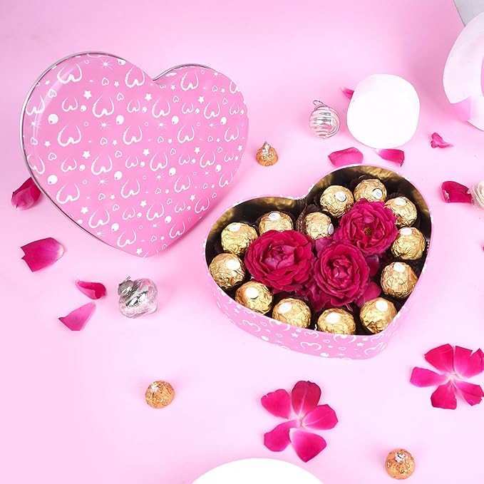 Heart-Shaped Metal Storage Box Airtight Tin Container for Cookies,Biscuits Multipurpose Decorative Box for Home Décor Gifting Ideal for Diwali, Rakhi, Valentine, Weddings pack of 1 (Pink)