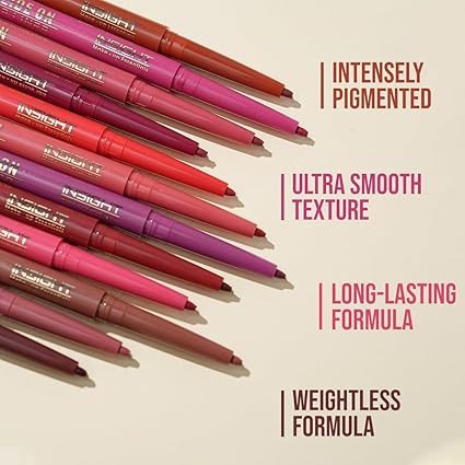 INSIGHT GLIDE ON LIP LINER HAS A SET OF 12 BEAUTIFUL SHADES TO SUIT ALL SKIN TONES. IT GIVES A MATTE TEXTURE THAT WEIGHTLESSLY DEFINES YOUR LIPS FOR A LONG-LASTING, MOIST MATTE FINISH. THIS LIP LINER MOISTURIZES YOUR LIPS AND GLIDES ON SMOOTHLY. THE TEXTURE IS DESIGNED FOR SHAPING, LINING AND FILLING THE LIPS. THESE PENCILS ARE SMOOTH & NON-DRYING.
