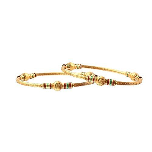 Jewar Mandi Bangle Set Traditional Indian Peacock Design Multicolor Handmade Enamel Work Meenakari Bracelets Gold-Plated 2 Piece Kada Ad Cz Multi-Stones Jewelry