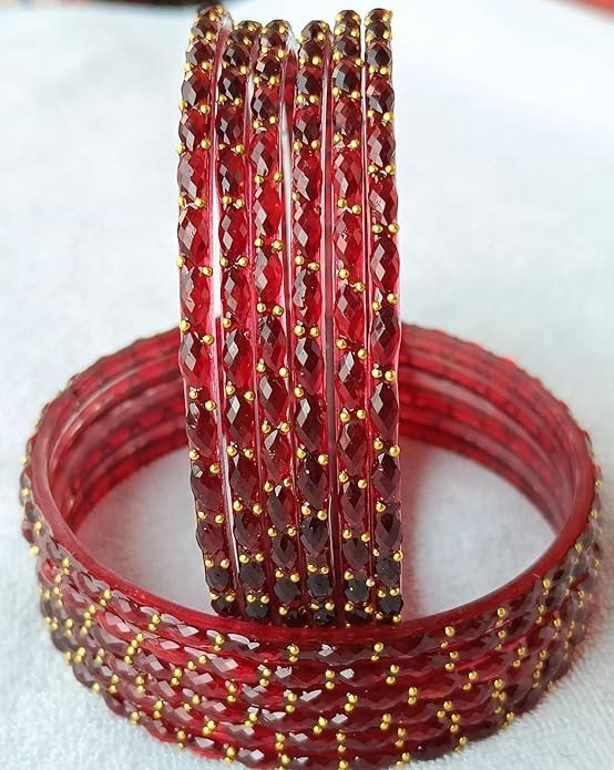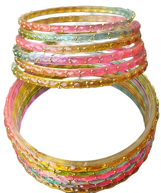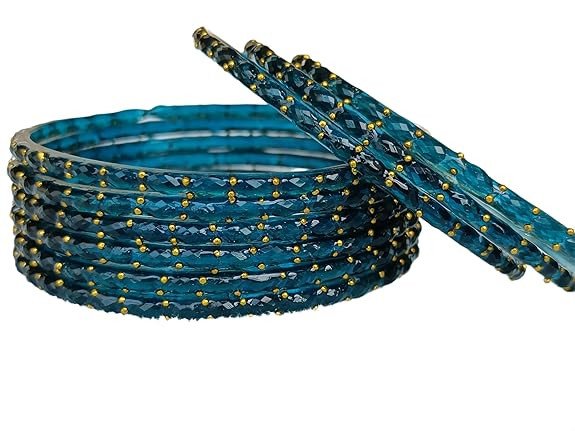 Elegant Glass Bangles with Glossy Raindrop Finish. Enhance your style with this set of 12 premium quality glass bangles designed with a glossy raindrop pattern. These bangles reflect light beautifully, making them the perfect match for both ethnic and modern outfits. Ideal for weddings, festivals, parties, and daily wear, they are lightweight, comfortable, and safe for long use. A timeless accessory that adds a traditional yet fashionable touch to your jewellery collection.