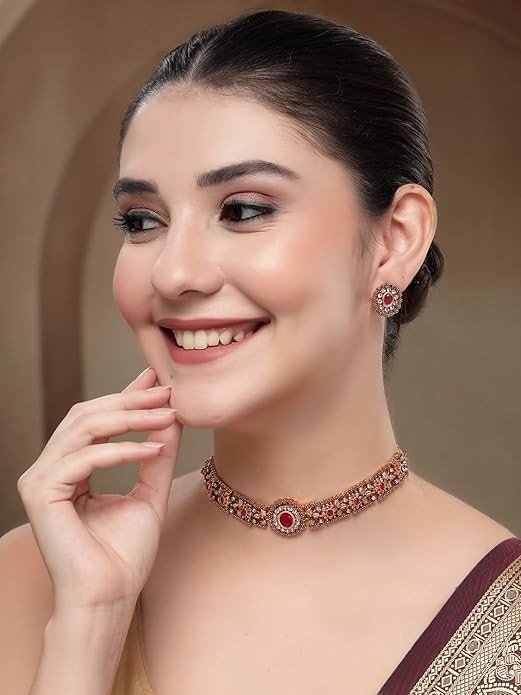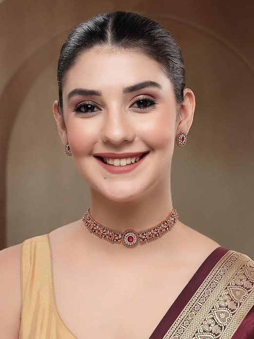 Shining Diva presents this latest stylish design fancy jewellery set. South Indian Gold Plated Choker Necklace Set with earrings. This fancy bridal wedding party wear choker Jewellery set for girls and women is made of pearl which looks stylish and goes perfect with any attire. This latest fancy jewellery set for women is perfectly suited for bridal wedding or party wear. Shining Diva is a well known brand across fashion jewellery sector. Shining Diva has huge collection of latest statement necklace jewellery, traditional necklace set, pendant set and other jewellery accessories which includes fancy bangles for women, wedding bangles, ear cuffs, traditional bangles kada, neck choker, fashion party wear necklace for girls and jhumki jhumka earrings. Shining Diva is pioneer of Imitation jewellery and designer pearl necklace set for women and American diamond hangings fancy party wear stylish Earrings. Shining Diva Fashion and Traditional jewellery give true value for your money. Buy Shining Diva trendy artificial jewellery from Amazon. These are also ideal for birthday gifts for girls, love valentine gifts for girlfriend, wedding gifts and anniversary gifts.