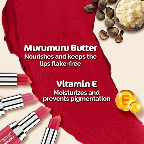 Get ready to pout out loud. Introducing India’s 1st Made Safe Certified Creamy Matte Long Stay Lipstick with an 8-hour non-drying matte finish that just refuses to quit. With 9 creamy matte shades curated for all Indian skin tones, our Creamy Matte Long Stay Lipstick provides an intense color payoff in just one glide. Infused with the natural goodness of Murumuru Butter and Vitamin E, this lipstick keeps your pout moisturized and oh-so-hydrated while still giving it that matte effect. Murumuru Butter will keep your lips flake-free for upto 8 hours. And then there’s Vitamin E, which is packed with antioxidants that help prevent pigmentation. What’s the cherry on the pout? Our Creamy Matte Lipstick is free from toxins and harmful chemicals!