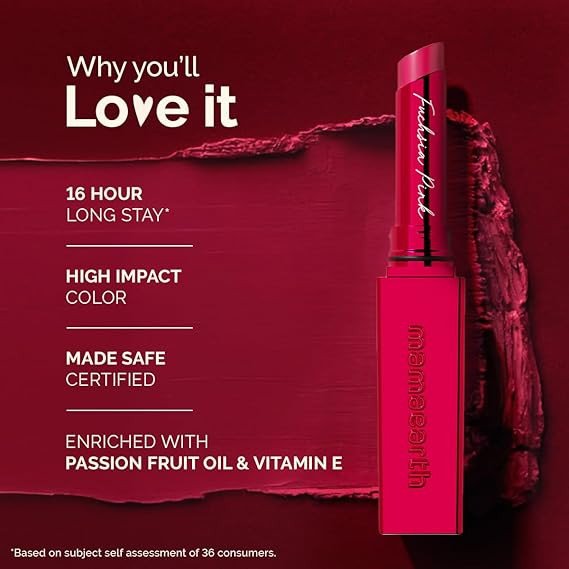 Mamaearth Luxe Matte Long Stay Lipstick with Passion Fruit Oil & Vitamin E -2g | Fuchsia Pink 16 Hour Long Stay | High Impact Color | Made Safe Certified
