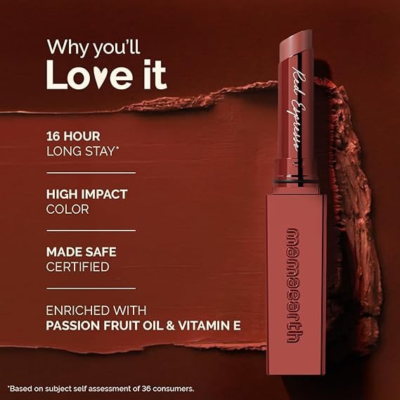 Mamaearth Luxe Matte Long Stay Lipstick with Passion Fruit Oil & Vitamin E -2g | Red Espresso 16 Hour Long Stay | High Impact Color | Made Safe Certified
