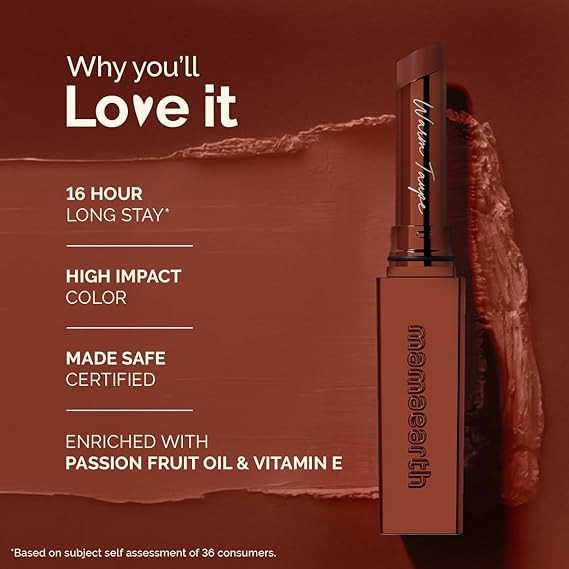 Mamaearth Luxe Matte Long Stay Lipstick with Passion Fruit Oil & Vitamin E -2g | Warm Taupe 16 Hour Long Stay | High Impact Color | Made Safe Certified