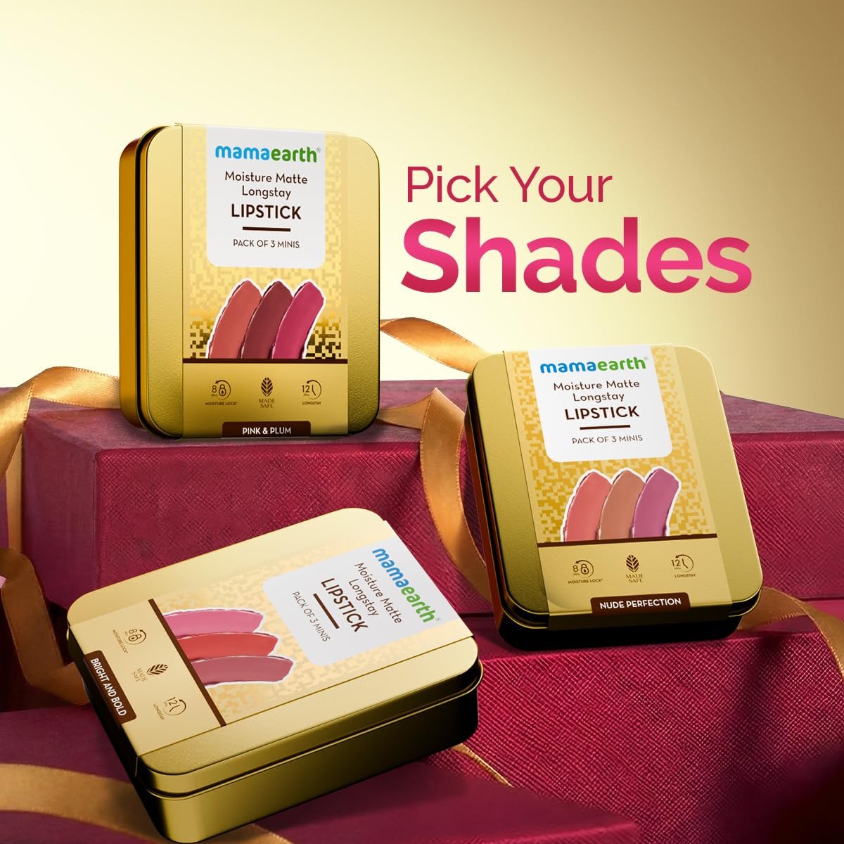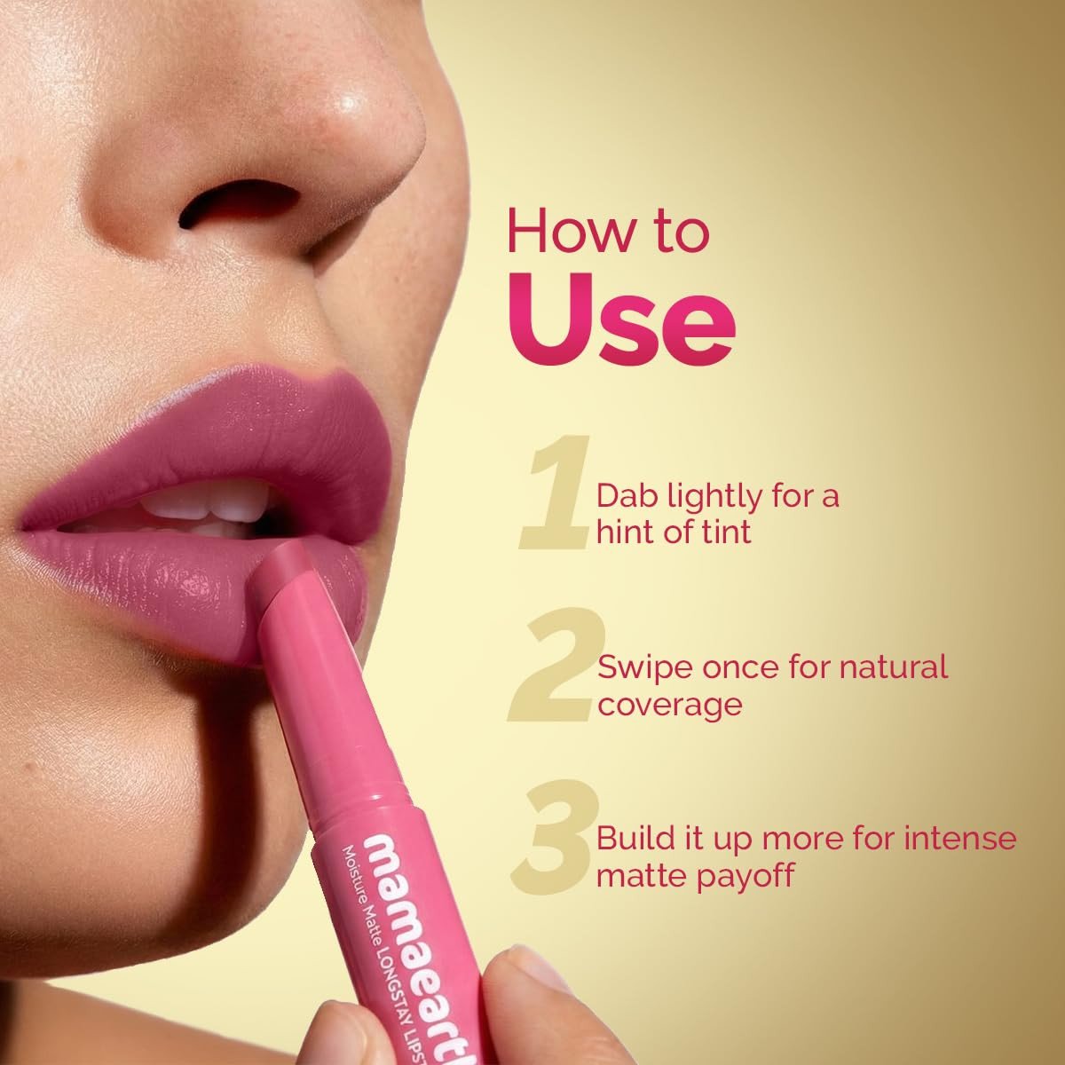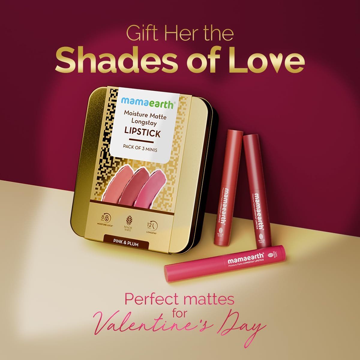 Mamaearth Matte Long Stay Lipstick Gift Set - Pink & Plum | 12-Hour* Long Stay | Made Safe Certified | Smudge Proof | Travel Friendly Pack