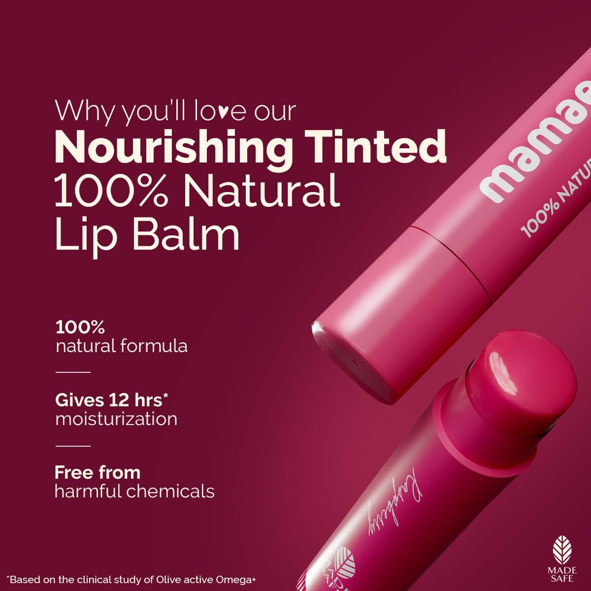 Mamaearth Nourishing Tinted 100% Natural Lip Balm With Vitamin E And Raspberry - 4 G|Gives 12-Hour Moisturization|For Dry&Chapped Lips|Naturally Pink Lips