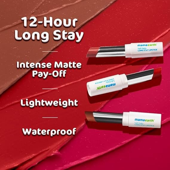 Mamaearth Soft Matte Long Stay Lipsticks with Jojoba Oil & Vitamin E for 12 Hour Long Stay - 01 Mocha Brown - 3.5 g