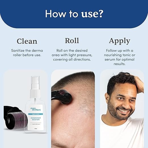 Man Matters Derma Roller with 540 Titanium Alloy Micro Needles 0.5 mm | Suitable for Beard Also | Reduces Hair Fall | Stimulates Hair Follicles | Easy to use | Safe & Effective