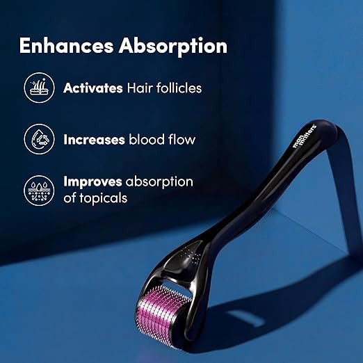 Man Matters Derma Roller With Disinfectant | 540 Micro 0.5mm Titanium Alloy Needles | Reduces Hair Fall & Stimulates Hair Follicles | Easy to use | Safe and Effective