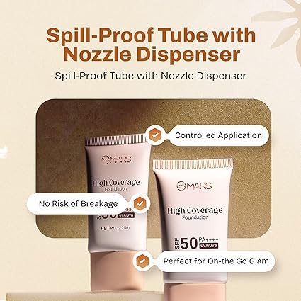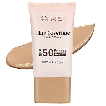 MARS SPF50 PA++++ High Coverage Foundation (25ml) (02-SOFT BEIGE) | Blemish Free & Blendable Makeup | For All Skin Type | IN-VIVO Tested with 5 Star UVA+UVB Protection Boots Rating