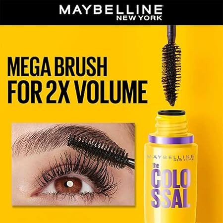 Maybelline New York Volume Express Colossal Mascara, Black, Highly Volumizing & Lengthening, Washable Mascara, Ophthalmologist Tested & Suitable For Contact Lens Wearers | 10.7ml