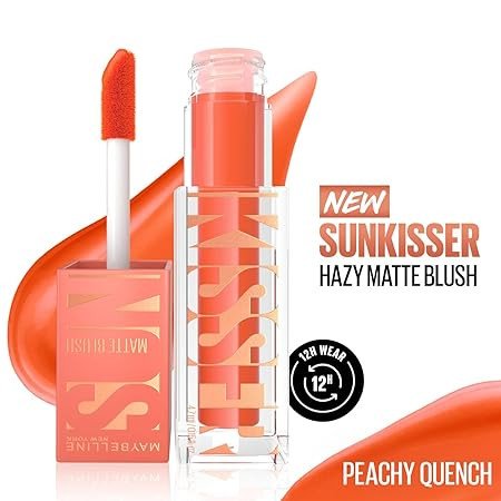 Maybelline New York Sunkisser Hazy Matte Blush, 12H Liquid Blush, Peachy quench, 34, 4.7 ml