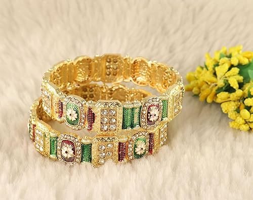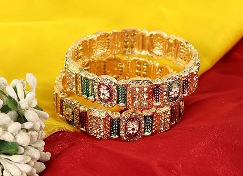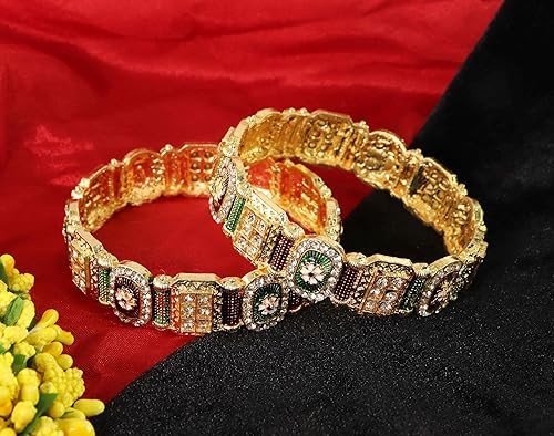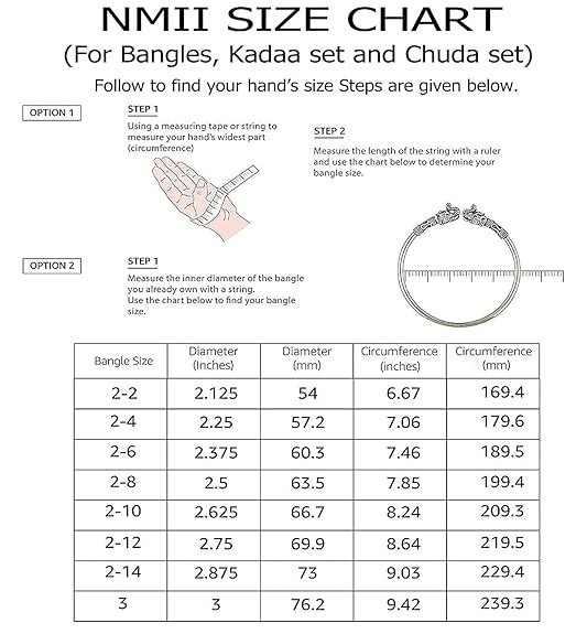 NMII's Traditional Gold Plated Alloy Metal Bangles Kada Set For Women & Girls. These Metal Bangles Set is Perfect to wear on Weddings, Party, Anniversary, Occasion, & Daily wear. It is Crafted from high-quality Metal Material & Zircon Diamond Stones. These are durable and features a vibrant color symbolizing love, passion, and new beginnings. The intricate design showcases NMII's skillful craftsmanship, ensuring you shine on your special day. The set also doubles as a versatile piece of bridal jewelry, complementing a wide range of outfits, including classic sarees and modern lehengas. NMII prides itself on offering the finest quality, timeless style, and unwavering commitment to tradition. The set is designed to make your day extra special, ensuring you look and feel your best. Elevate your bridal ensemble with NMII's Bangles Set and make memories that will last a lifetime. These NMII's Designer Bangles Set Have a Premium Finish and are Perfect for Weddings, Engagements, Functions, Festival, Rituals and Events. The Brand NMII sells all types of Glass Bangles, Metal Bangles, Acrylic Bangles, Chuda Sets, Kaleera Latkan Sets, Kadas, Bracelets, Women and Girls Traditional to Modern Jewellery, and many More. And Please Refer to our Size Chart to Know your Hand Size Precisely. To maintain longevity, clean bangles with a smooth cotton cloth, avoid direct water, perfume, deodorant, sunlight, and chemicals, and store them in an airtight zip-lock pouch. Thank You For Choosing NMII's Metal Bangles Collection. We are selling on Amazon Since 2016.