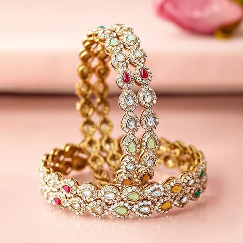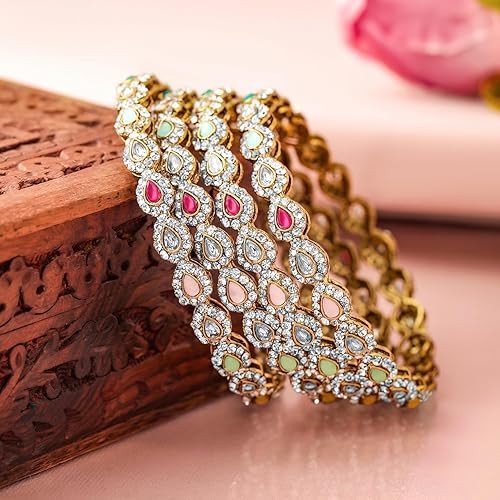 Rubans Bangles Set of 4 Kundan Studded Ethnic Stylish Trendy Jewellery Gift for Women & Girls