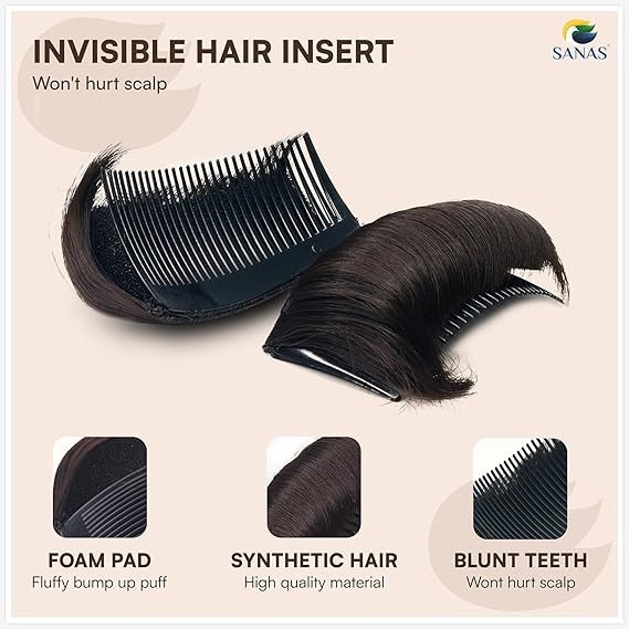 This hair volume puff with comb is designed to add instant volume and a natural lift to the front of your hair. It easily blends with your natural hair, giving a fuller and more defined look without teasing or backcombing. The built-in comb helps secure the puff firmly in place, making it comfortable to wear for long hours. Perfect for creating puff hairstyles, buns, and elegant looks for daily wear or special occasions.