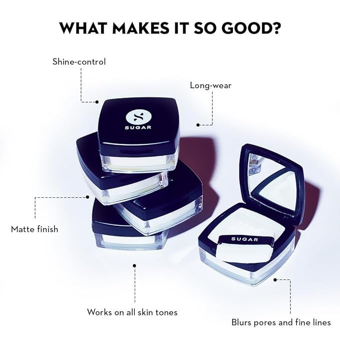 The SUGAR Loose Setting Powder is a lightweight, finely milled powder that helps set makeup while giving the skin a smooth, flawless finish. It effectively controls excess oil, minimizes shine, and blurs the appearance of pores for a soft-focus look. The silky texture blends effortlessly into the skin without feeling heavy or cakey. Ideal for all skin types, this setting powder keeps your makeup fresh and long-lasting throughout the day.