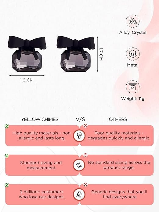 The deep smoky crystal finish reflects light beautifully, making them ideal for evening wear, parties, and special occasions. Lightweight and comfortable, these studs can also be styled with casual outfits for a trendy, edgy touch.