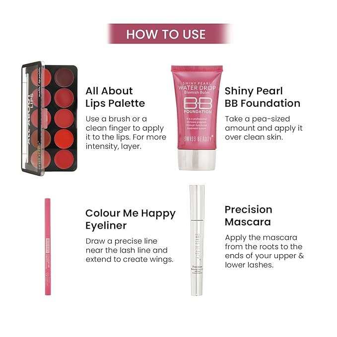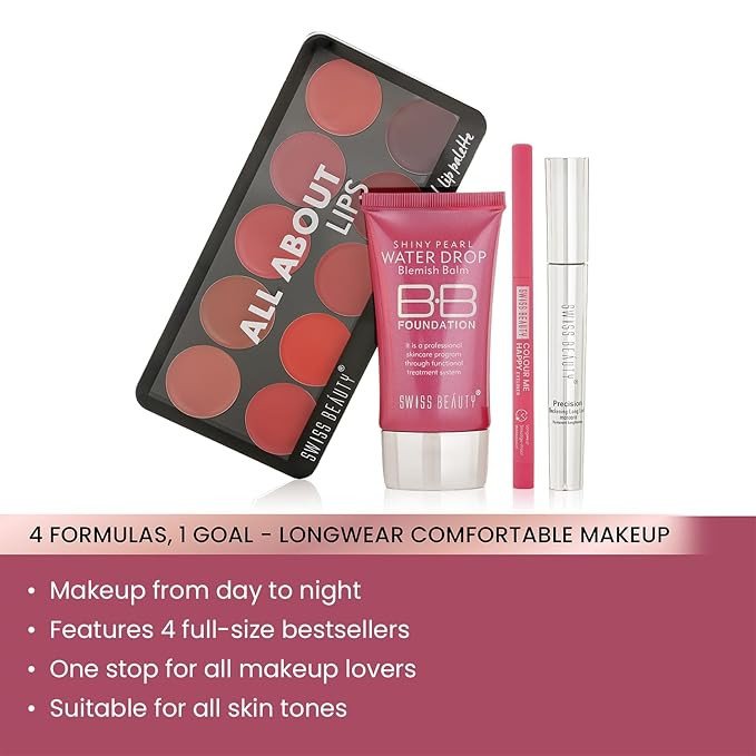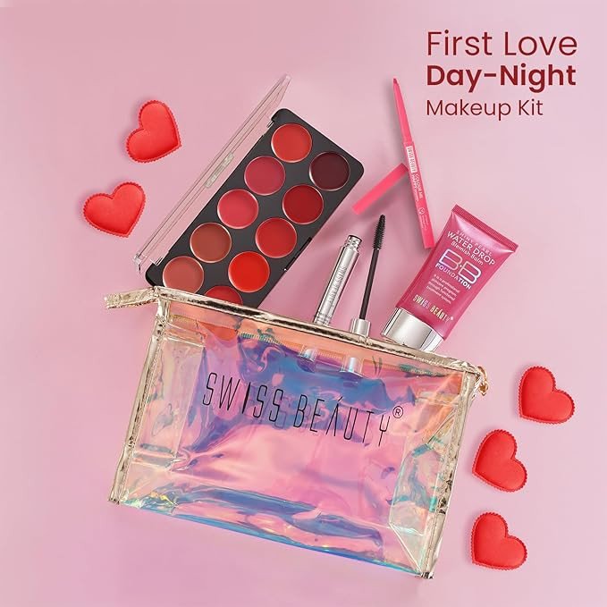 SWISS BEAUTY First Love Day-Night Makeup Kit | All About Lip Palette | Precision Mascara | Bb Foundation