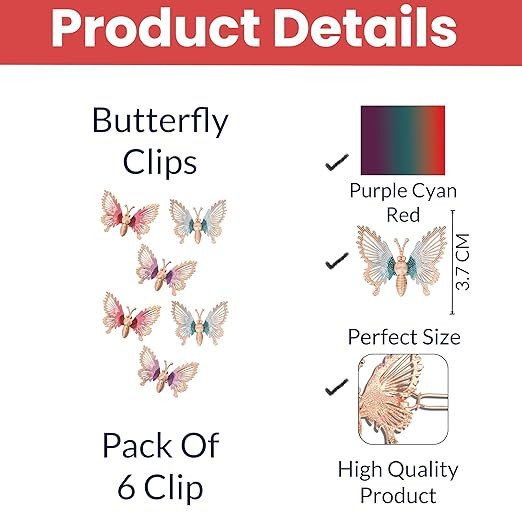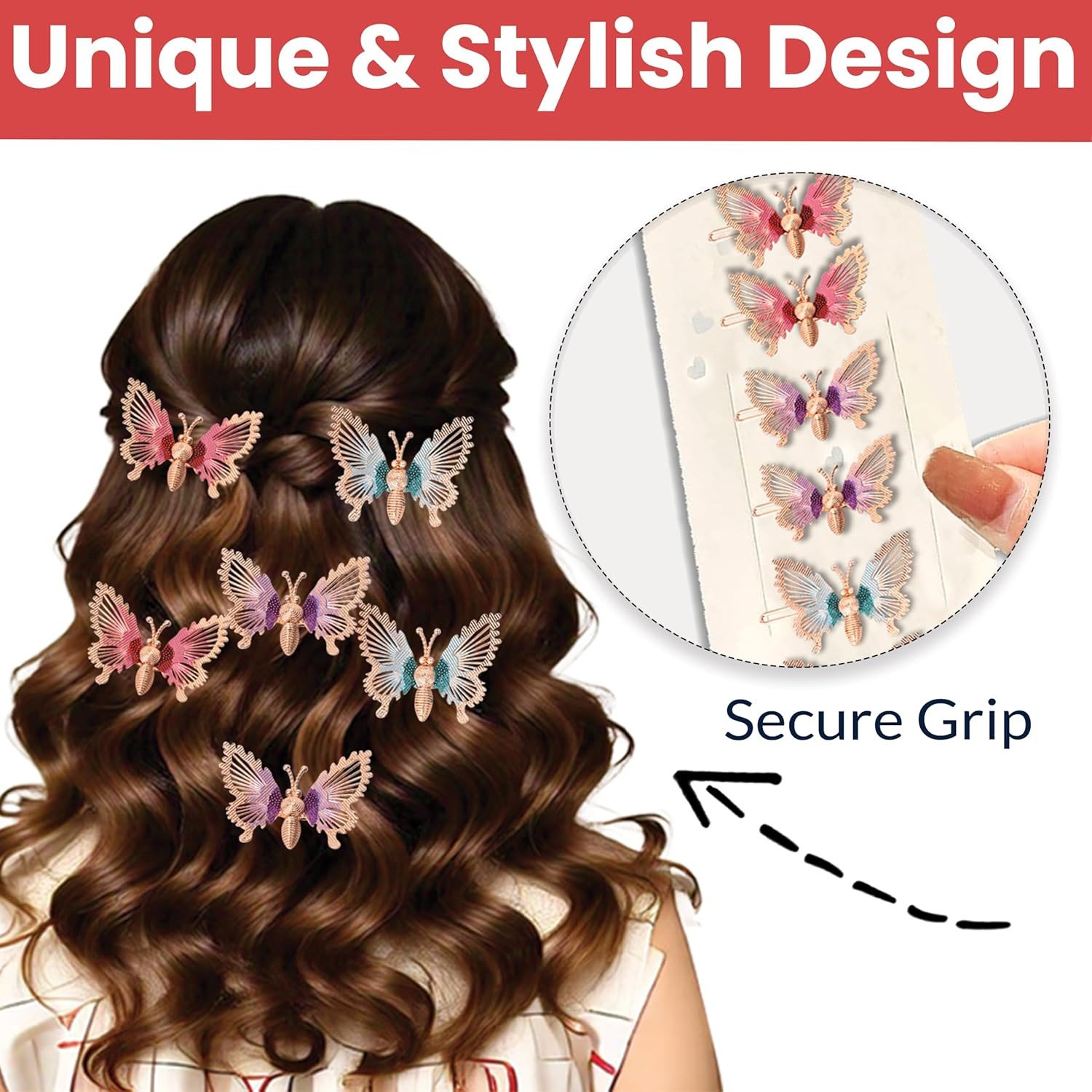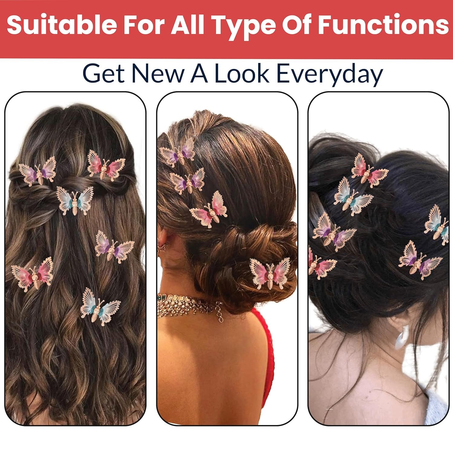 Temperia Hair Accessories Women Stylish Wedding & Parties-Hair Pins Women & Girls-Butterfly Hair Style Bridal Brooch & Braid Juda Bun-Hairstyle Decoration Bride Clips-Pack Of 6 - Multicolor