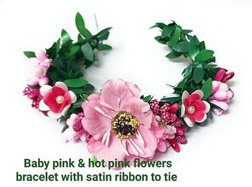 CRAnsh Creations;Crafted with Love Handmade Flower Floral bracelets with ribbon to tie for women girls for haldi mehndi baby shower wedding friendship day rakhi lumba Pack of 2 pc