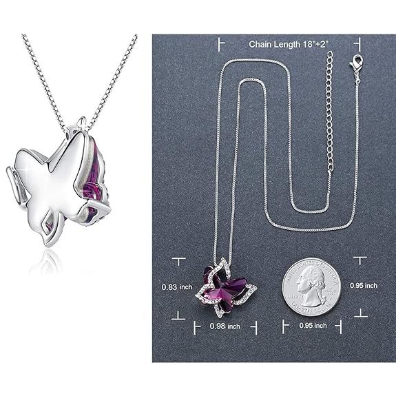 • Inspired by Nature, this Montana Purple Butterfly Crystal Pendant for Women features link To Sparkling Crystals in Blue Butterfly Shaped. A Classic Symbol Of Love silver pendant it makes a Lovely addition to Your beautiful Elegance. Our Product is perfect for valentines Anniversary Birthday gift for Women, Girlfriend and Wife.