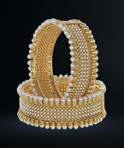 YouBella Jewellery for women Traditional Pearl Studded Gold Plated Bangles for Women and Girls