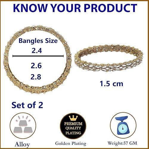 ZENEME Gold-Plated White Kundan studded Designer Floral Style Bangles Jewellery Set for Girls and Women (Set Of 2)