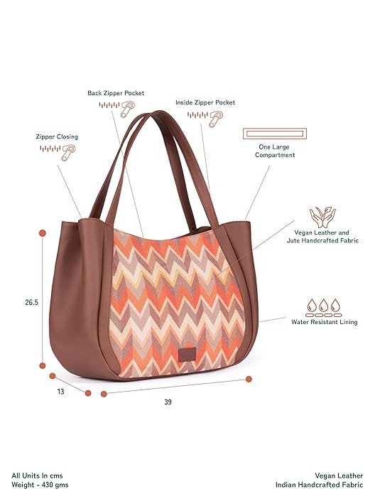 ZOUK Jute Handcrafted Vegan Leather Women's Shoulder Luna Handbags