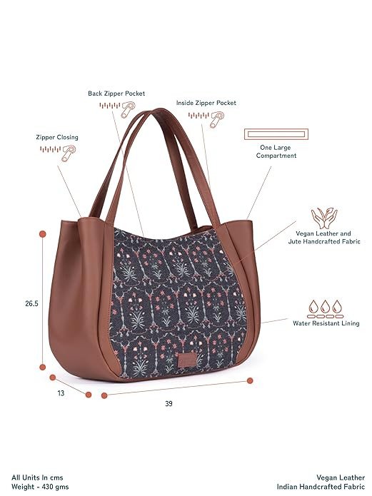ZOUK Jute Handcrafted Vegan Leather Women's Shoulder Luna Handbags