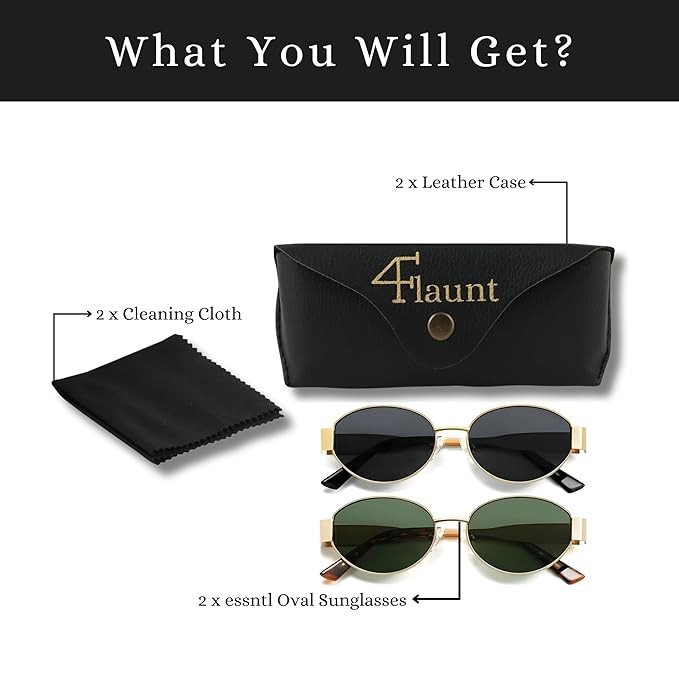 The 4Flaunt Retro Oval Sunglasses are available in five stunning shades – Gold Grey, Gold Brown, Gold Green, Matte Black, and Silver Grey. With such a versatile color range, you’ll always find the perfect pair of oval shades to complement your look and elevate any outfit.