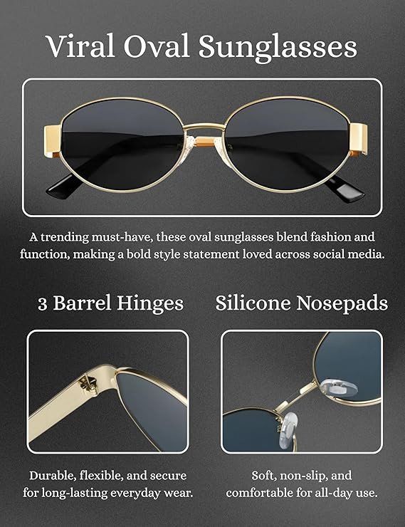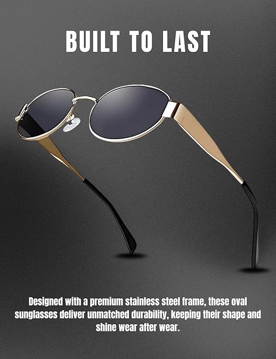 The 4Flaunt Retro Oval Sunglasses are available in five stunning shades – Gold Grey, Gold Brown, Gold Green, Matte Black, and Silver Grey. With such a versatile color range, you’ll always find the perfect pair of oval shades to complement your look and elevate any outfit.
