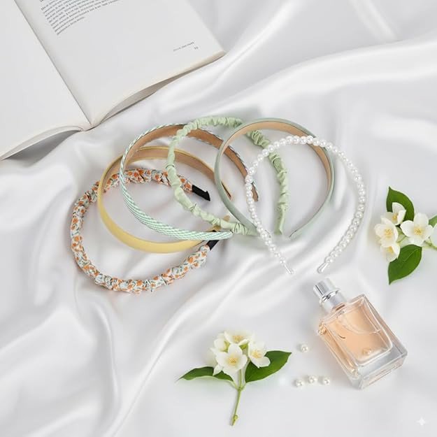 7Pcs Hair Band for Women Stylish, Floral Wide Hair Band for Girls Kids, Pearl, Plaid, Countryside Style Hair Accessories Hairbands for Kids