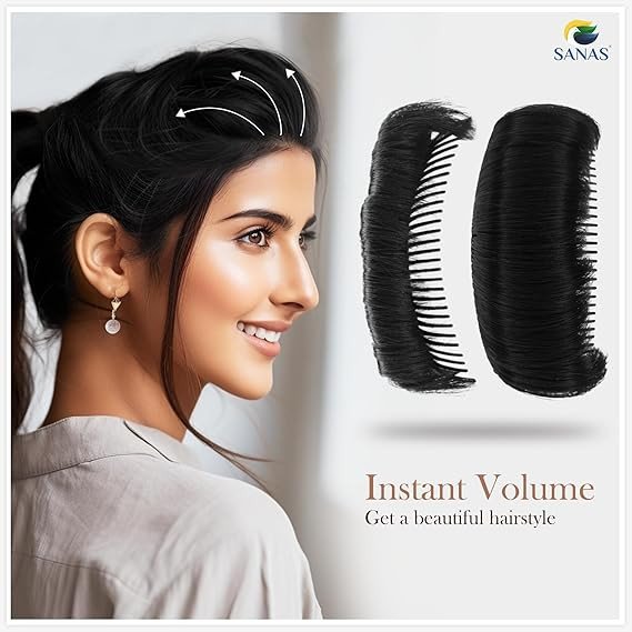 This black hair volume puff with comb is designed to give instant volume and a natural lift to the front of your hair. The rich black color blends seamlessly with dark hair, creating a fuller and polished look. It features a built-in comb that helps hold the puff securely in place, making it comfortable for long wear. Ideal for puff hairstyles, buns, and elegant everyday or party looks.