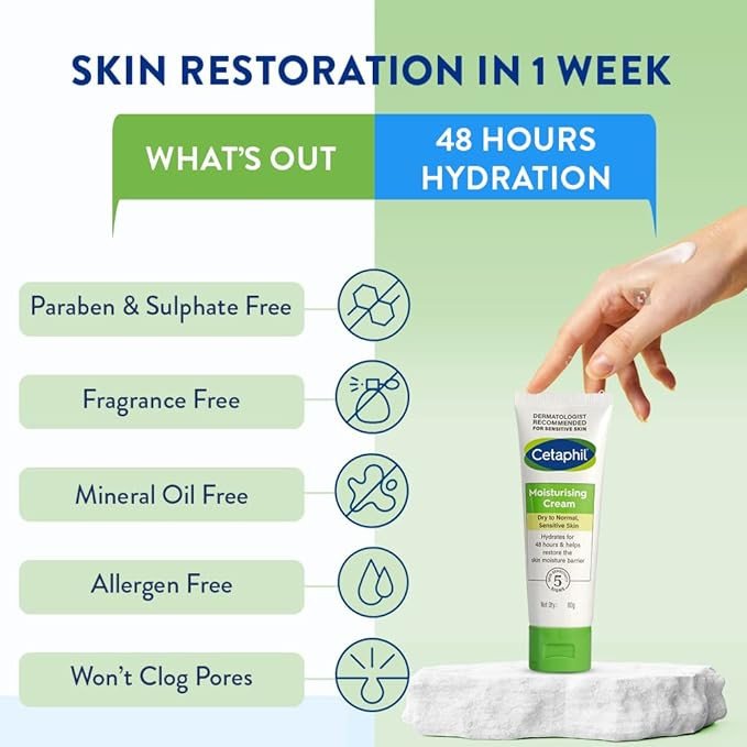 Cetaphil Moisturising Cream for Face & Body, Dry to Normal skin, 80 gm (Pack of 4)
